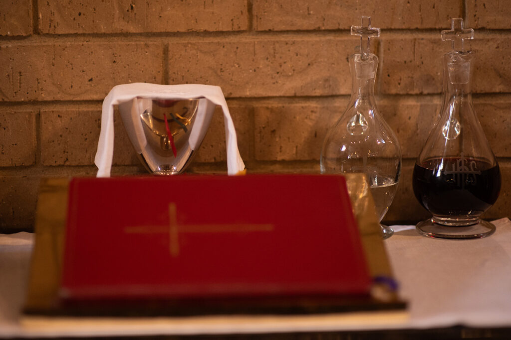EUCHARISTIC MINISTERS – serve the chalice of wine during worship services and at special services throughout the liturgical year. Eucharistic Ministers serve in a scheduled, regular rotation, usually about once a month, and arrive early to worship to coordinate with others, and vest in alb and cincture. In addition to regular Sunday attendance, Eucharistic Ministers meet from time to time for worship, fellowship and instruction of new members.